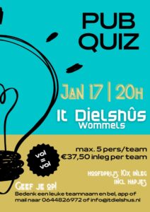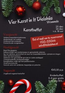 22 november 20:00 - 23:00Theater Pier 21 | En ik dan?Bekijk 25 december 16:00 - 23:00KerstbuffetBekijk 26 december 16:00 - 23:00KerstbuffetBekijk 17 januari 2026 20:00 - 23:30PubquizBekijk 13 februari 2026 20:00 - 23:00Gurbe DouwstraBekijk
